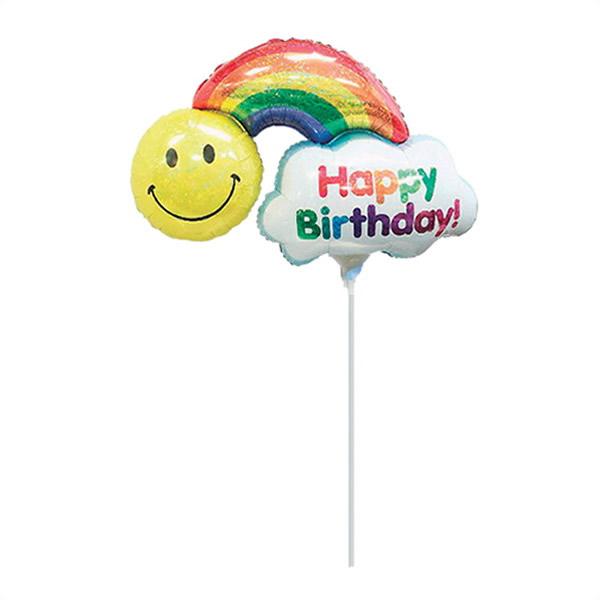 スティック風船 ハッピーバースデーレインボー バルーン 棒付き